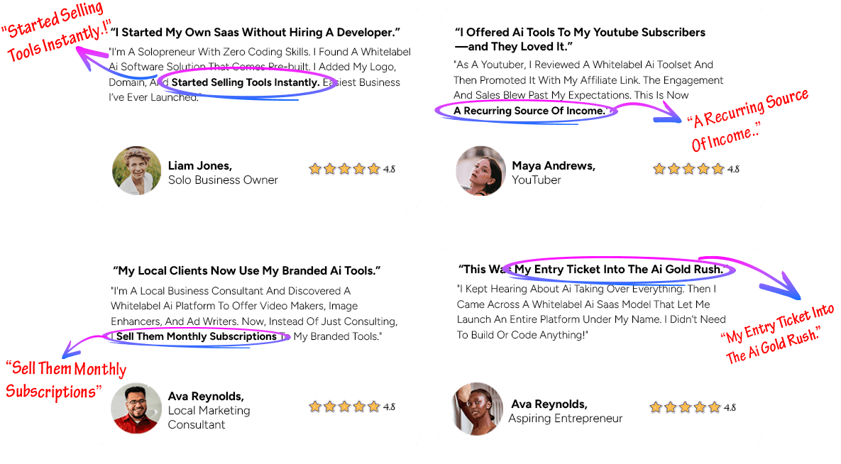 Testimonials & Case Studies: Testimonials, Case Studies, And Examples On This Site Reflect The Experiences Of Specific Users Of AI Saas Builder Products Or Related Products. These Are Not Intended To Represent Or Guarantee That Anyone Will Achieve The Same Or Similar Results. Individual Results Vary Widely.
